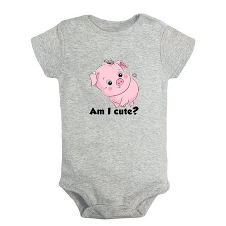 Am I Cute Funny Rompers For Babies Animal Pig Pattern Jumpsuit Newborn Baby Unisex Bodysuits Infant Jumpsuits Toddler 0-24 Months Kids One-Piece Oufits
