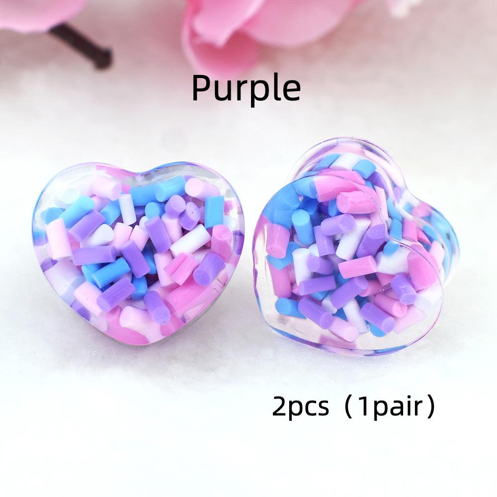 2 шт. 6-50 мм разноцветные шоколадные акриловые ушные туннели в форме сердца, заглушки, носилки, расширитель, двойные расклешенные телесные туннели, ювелирные изделия для пирсинга 6mm фиолетовый
