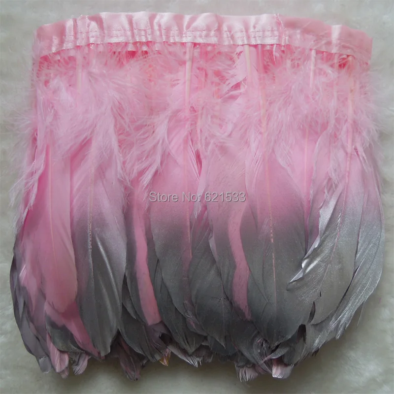 2 ярда/лот! Серебристо-розовая лента с гусиными перьями и бахромой из натуральных перьев для поделок, вечерние юбки, украшение для шитья