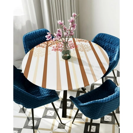 Tablecloth Round Fitted Autumn Leaves Tree Trunk Elastic Edged Table Cover Protector Cloth Waterproof Polyester Rectangle 40 -44