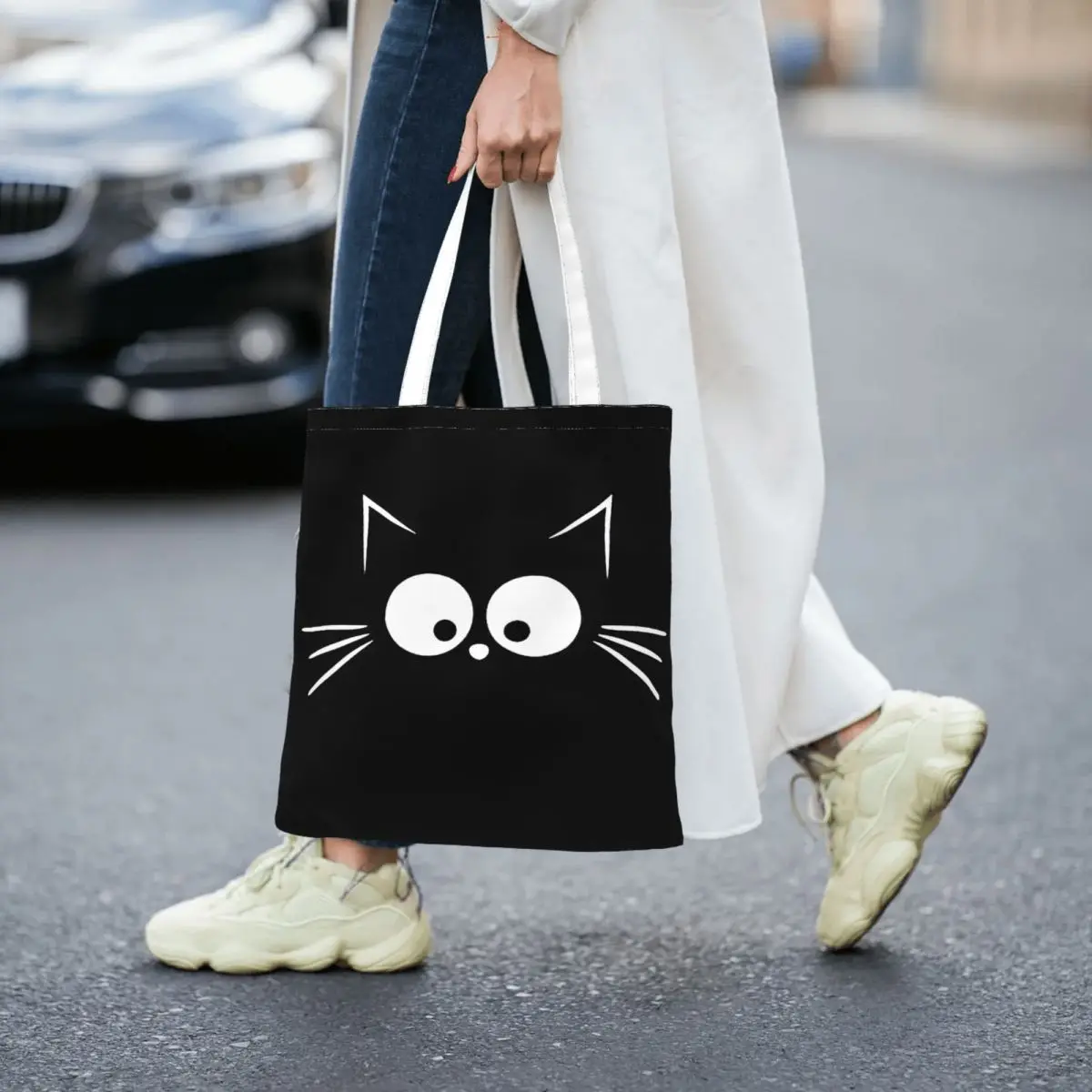 Cute Black Cat Women Canvas Handbag Large Capacity Shopper Bag Tote Bag withSmall Shoulder Bag