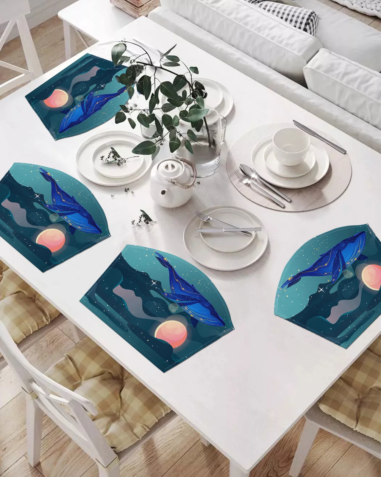 2/4/6 шт. набор подставок в форме веера, коврики для стола в форме звездного неба, ночного Кита, Луны, подставки, Рождественский домашний декор, ...