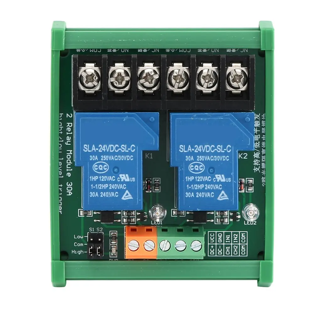 2 Channel Relay Module 30A with Optocoupler Isolation 24V for High and Low Triger Smart Home PLC Automated Control