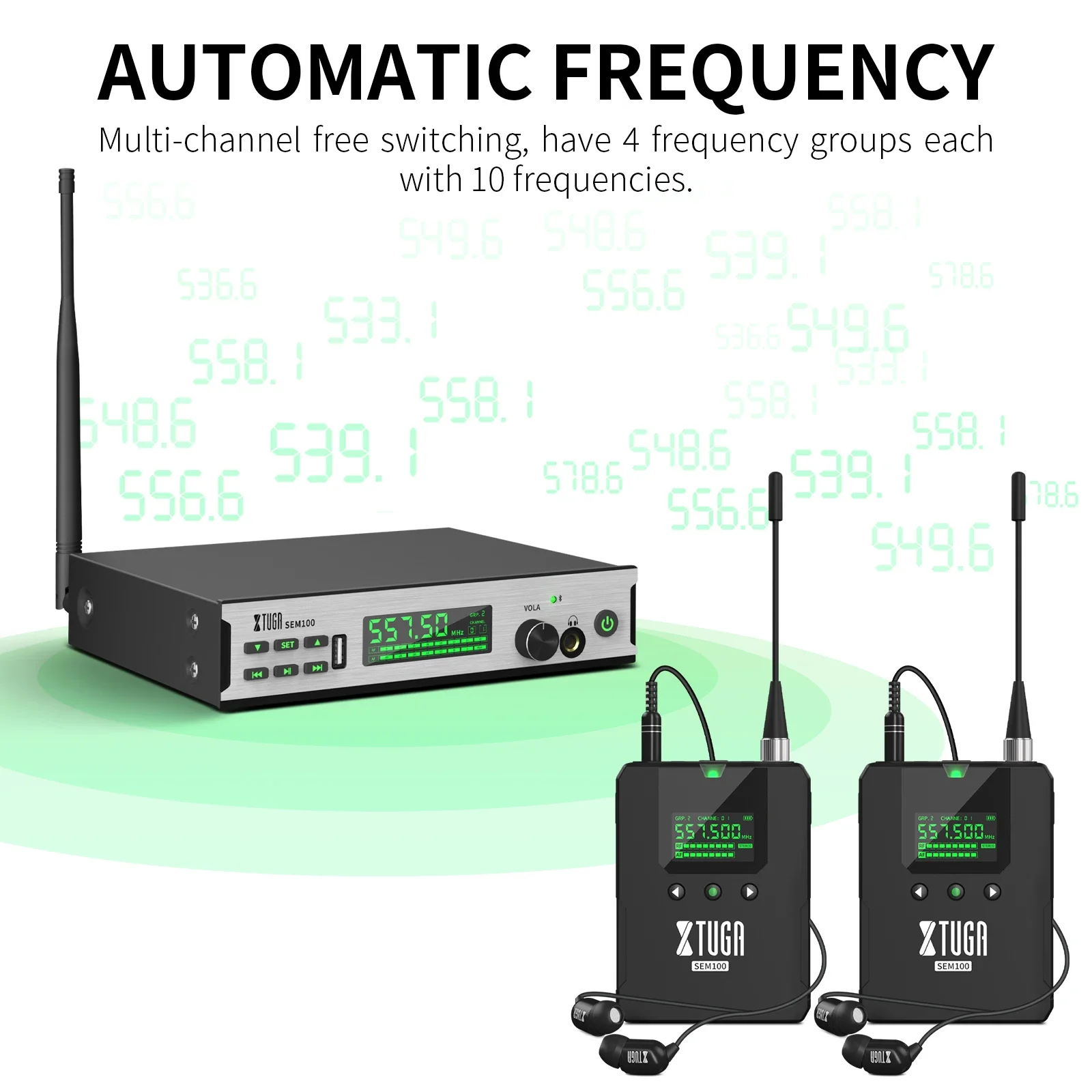 2 Channels Transmitter professional Stereo Wireless In Ear Monitor System with 2 Bodypack