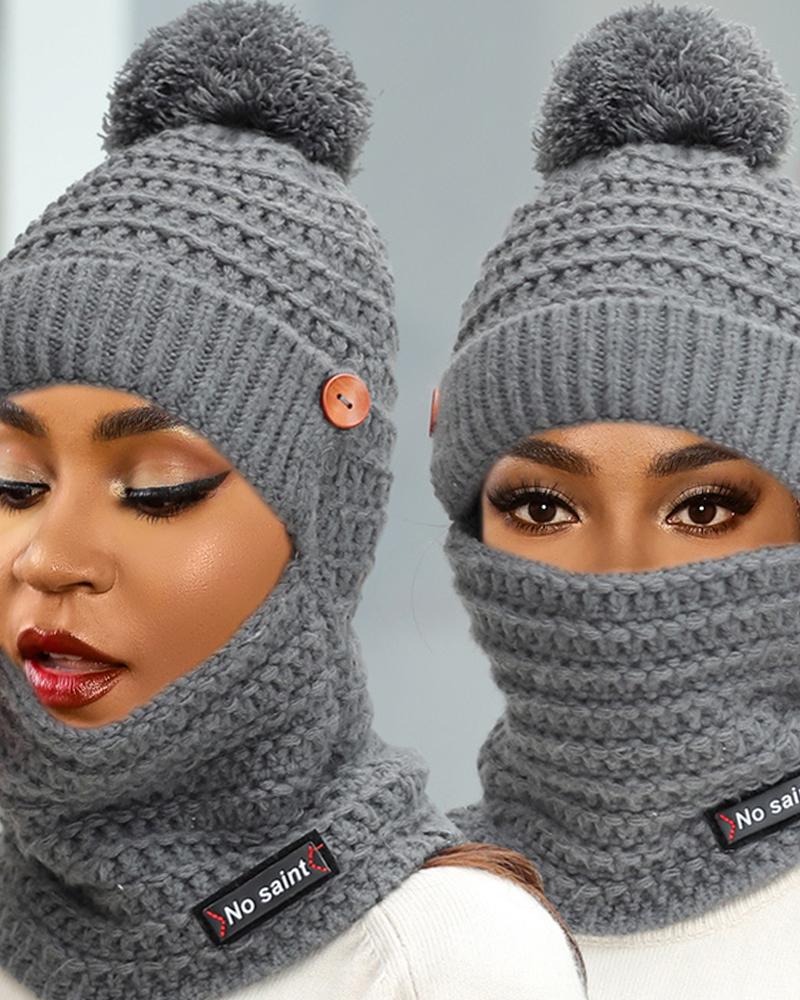 2 In 1 Pom Pom Plain Knit Beanie, Gray