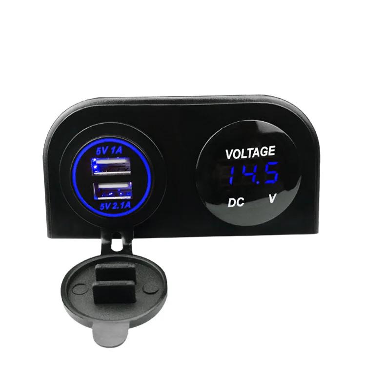 2 в 1 основание палатки, водонепроницаемое, 12 В, 24 В, автомобильный светодиодный цифровой вольтметр, двойная розетка USB, зарядное устройство 2,1 А/1 А для автомобиля, лодки, грузовика-фургона синий