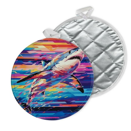 2 PCS Pot Holders for Kitchen Potholders Sets with Hook for Oven Cooking Baking Abstract Shark Against Patterned Background
