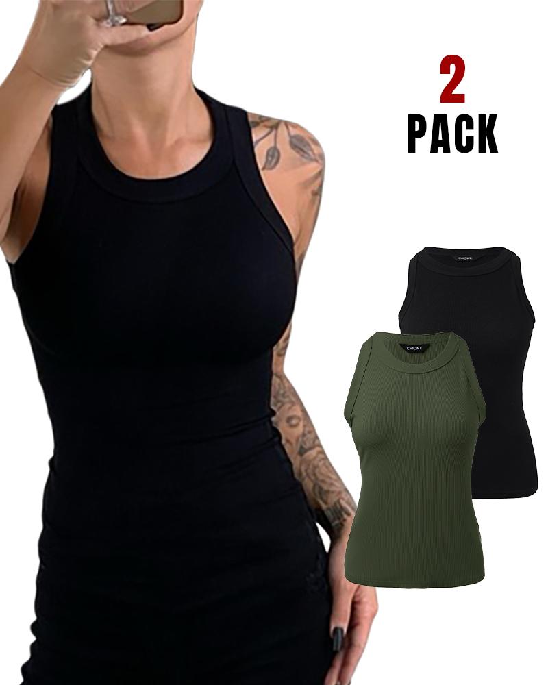 2-Pack Round Neck Thick Strap Racerback Ribbed Tank Slim Fit Tops without Bra Pads, Style2