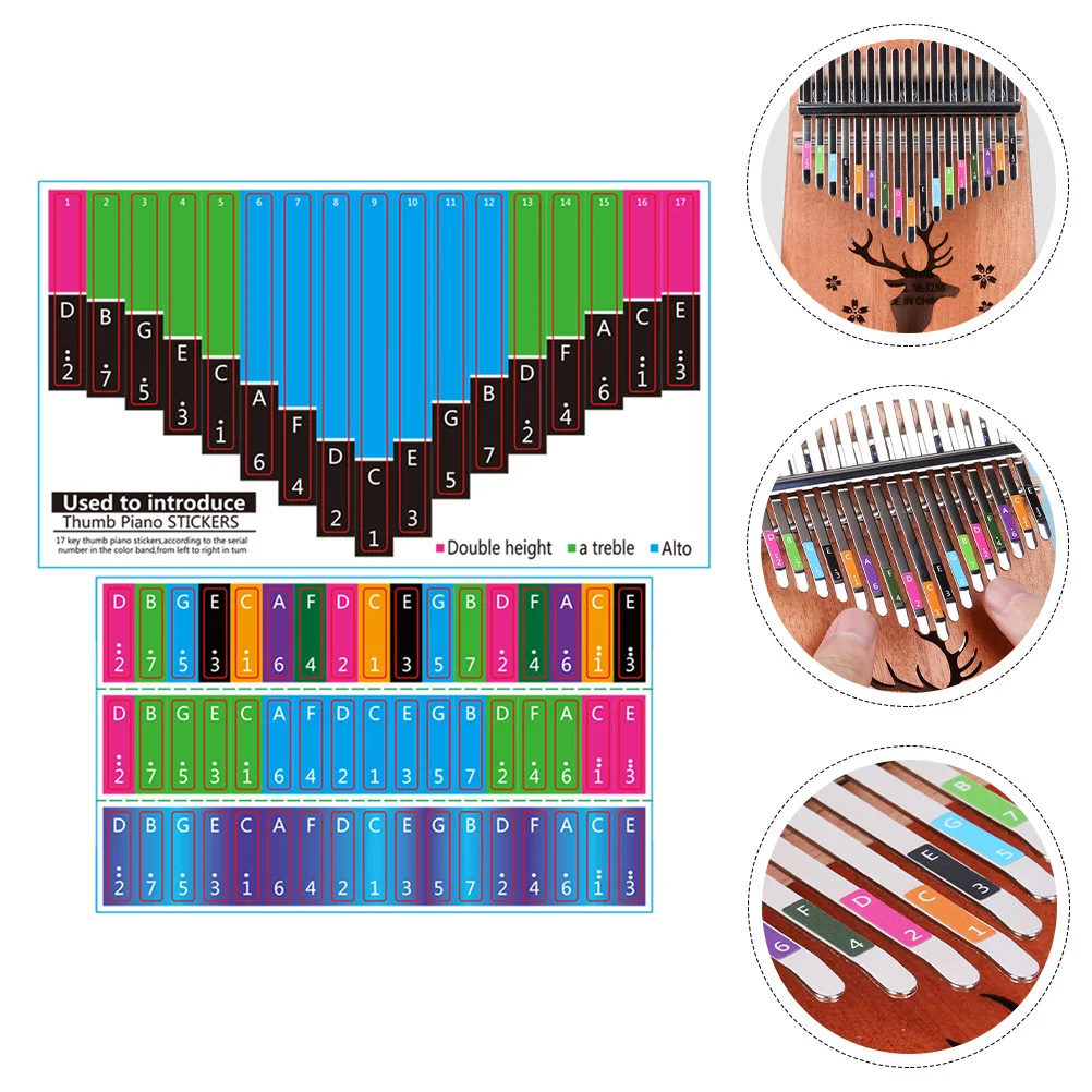 2 Sheets Musical Scale Sticker for Kalimba Thumb Piano Beginner Decals Set Clear Tone Labels Learning Accessories Kit