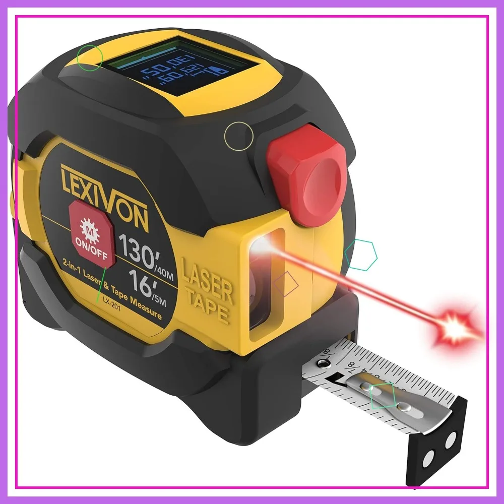 2-in-1 Digital Laser Tape Measure with 130ft/40m Range, Backlit LCD Display, and AutoLock Measuring Tape