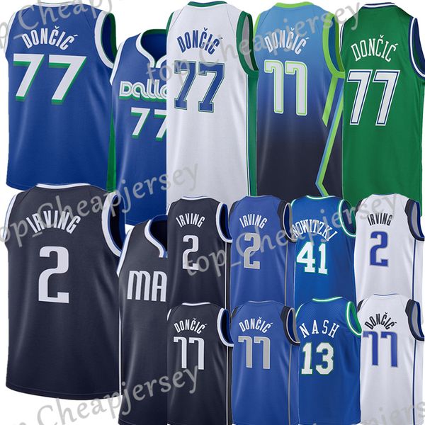2 kyrie irving basketball jersey dirk 41 nowitzki jersey luka 77 basketball doncic jerseys 75th anniversary jerseys, Black;red