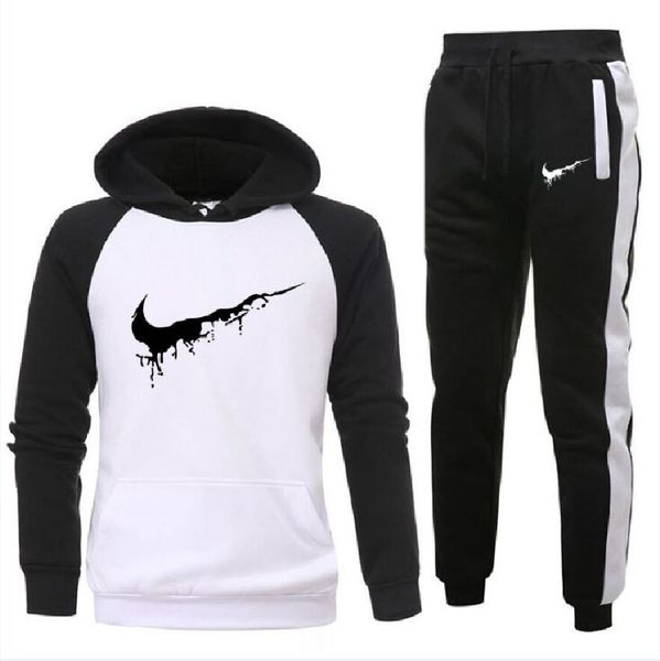 2 pieces sets tracksuit brand printing men hooded sweatshirt+pants pullover hoodie sportwear suit casual sports clothes s-xxxl, Gray