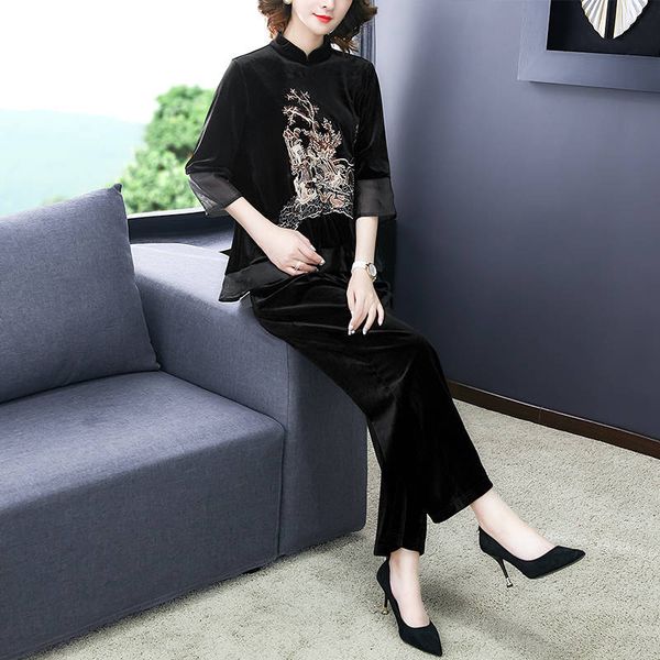 2 spring/autumn tracksuit piece pant suits for velvet upper sleeve embroidered women and women's soft chinese outwear pants 6ce8, Gray