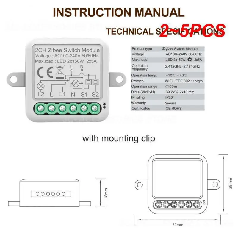 2 ~ 5 шт., 1/2/3/4 комплект, работает с Alexa Home, умный мини-модуль переключателя Zigbee, фотовыключатель, модуль переключателя «умный дом»