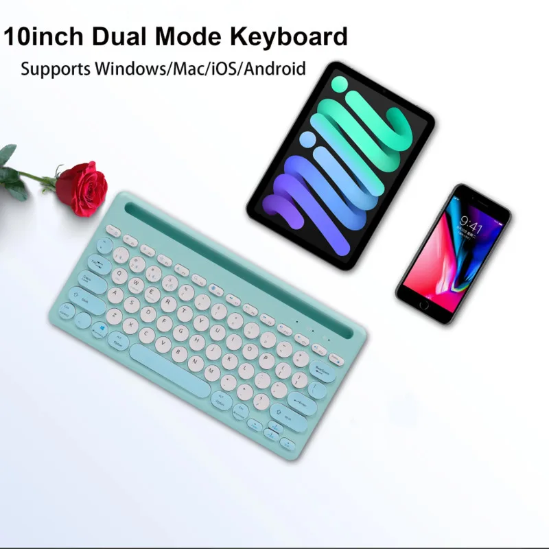 2.4G Bluetooth Dual Mode Wireless Keyboard 78Keys Tablet Ergonomic Simultaneously Connected Keyboard for Laptop Computer PC