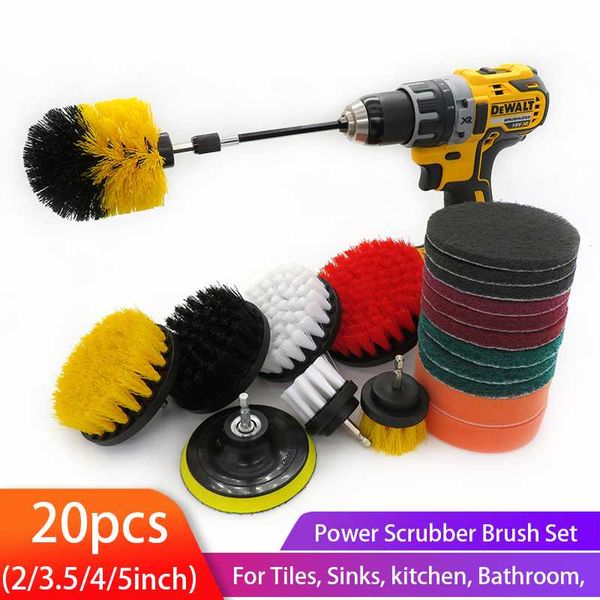 20шт / set drill щетка питания скруббер щетка cleaning kit ванной surfaces ванна, душ, плитки и затирка, дрель монтажный комплект