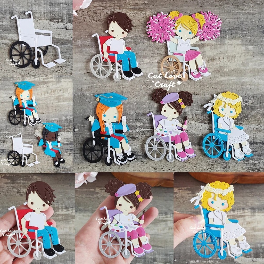 Catlove Wheelchair Boys and Girls Metal Cutting Dies Scrapbooking Mold Stencil Die Cuts Card Making DIY Craft Embossing New Dies