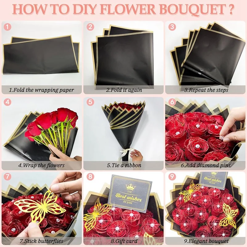 20 листов цветочной оберточной бумаги, Цветочная оберточная бумага для букетов
