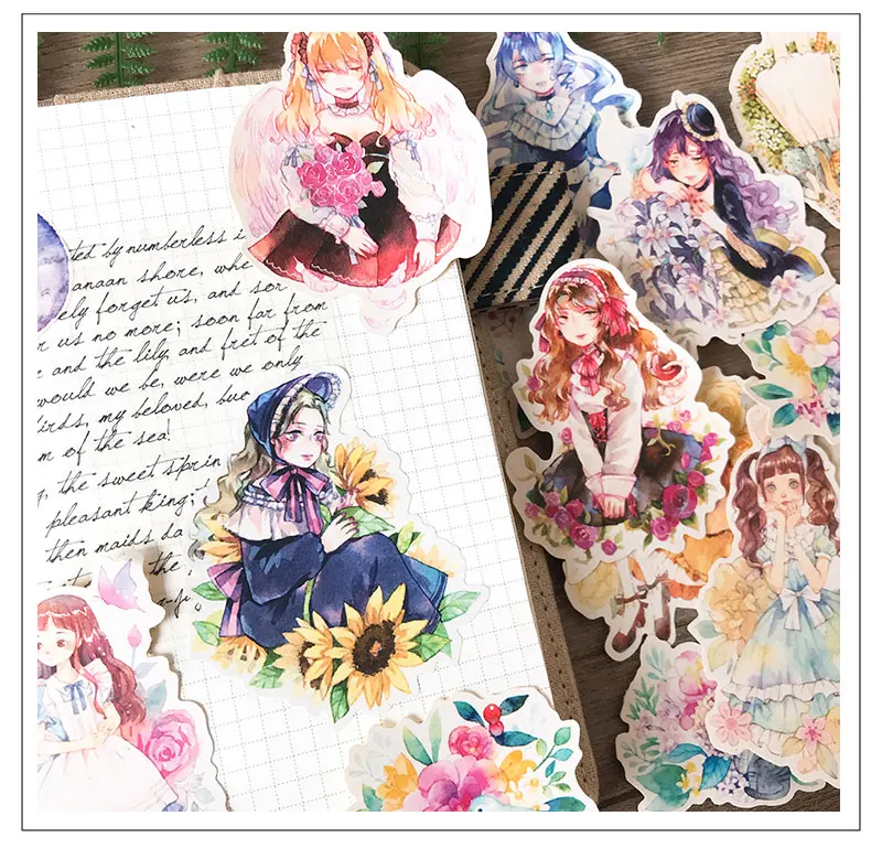 20 шт. аниме наклейки с цветами и девушками, s/наклейки для скрапбукинга, s/декоративные наклейки/Сделай сам, фотоальбомы