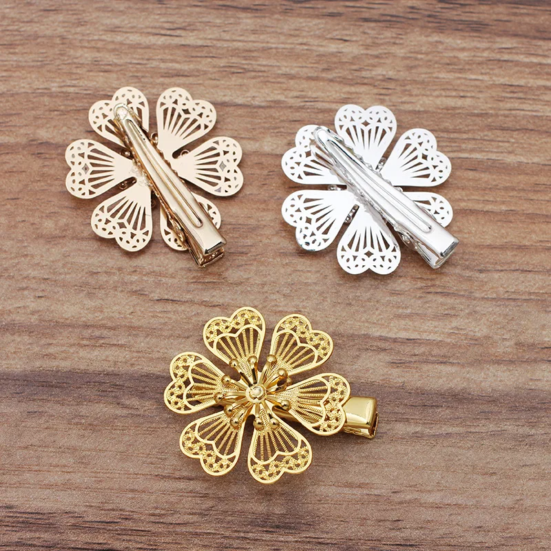 (20 шт./лот) 32 мм филигранные Цветочные заколки для волос, аксессуары для волос, Материалы для творчества