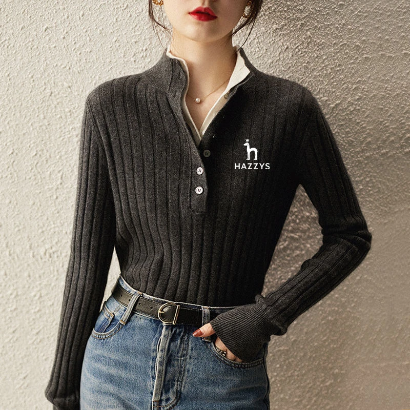 2023 Golf Wear Autumn Women New Golf Sweater Women's Golf Clothing Fake Two Half High Neck South Scape Golf Knit Top Underlay