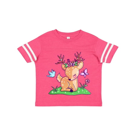 Inktastic Cute Baby Deer with Butterfly Bird and Flowers Gift Toddler Boy or Toddler Girl T-Shirt
