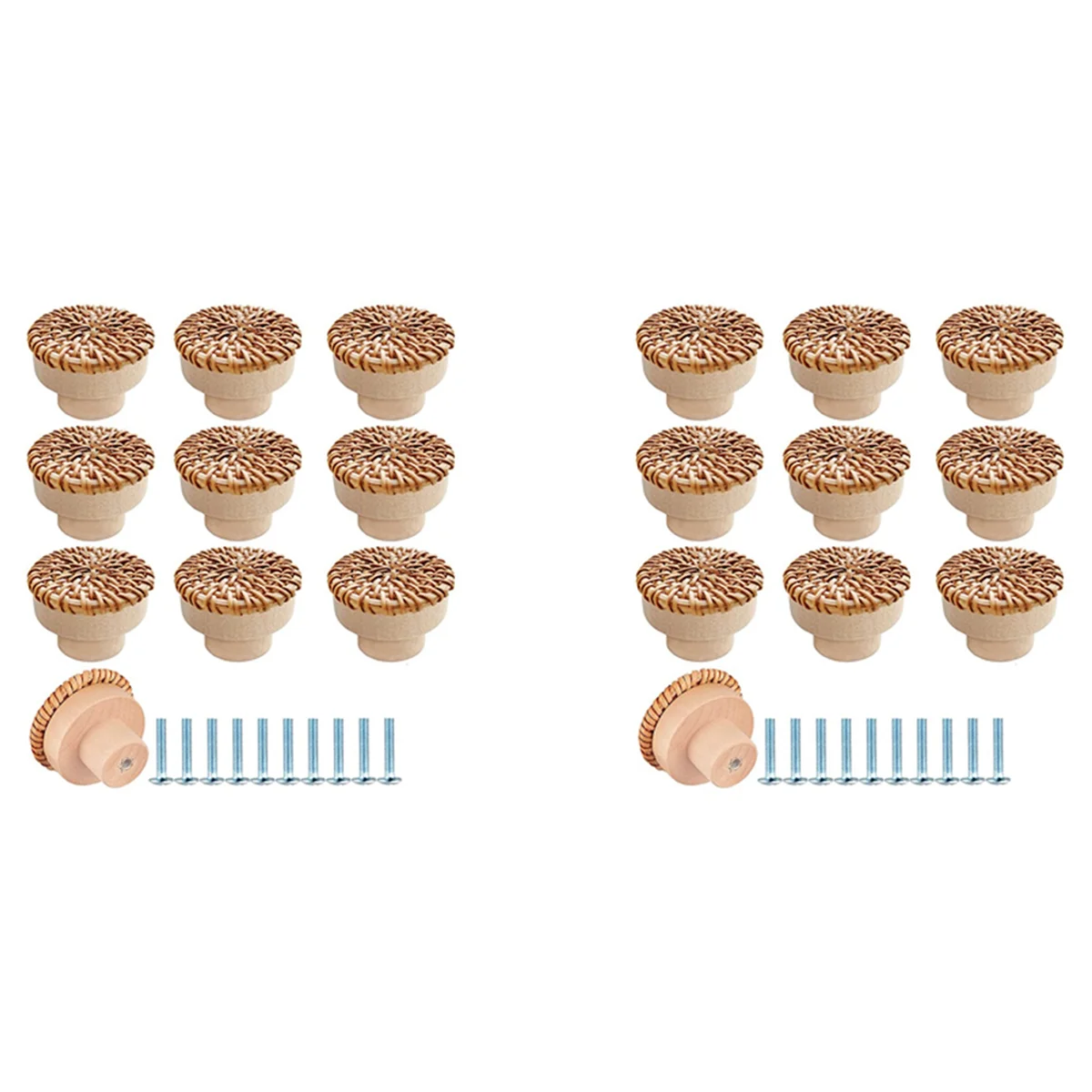 20 шт. ручки из ротанга в стиле бохо, круглые деревянные ремни для декоративной мебели в стиле бохо, (20 ручек и 20 винтов)