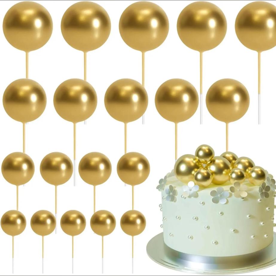 20 шт., украшения для торта с шариками, мини-воздушные шары, топперы для торта, золотые шарики, выборки для торта, топперы для торта, шарики, украшения для торта