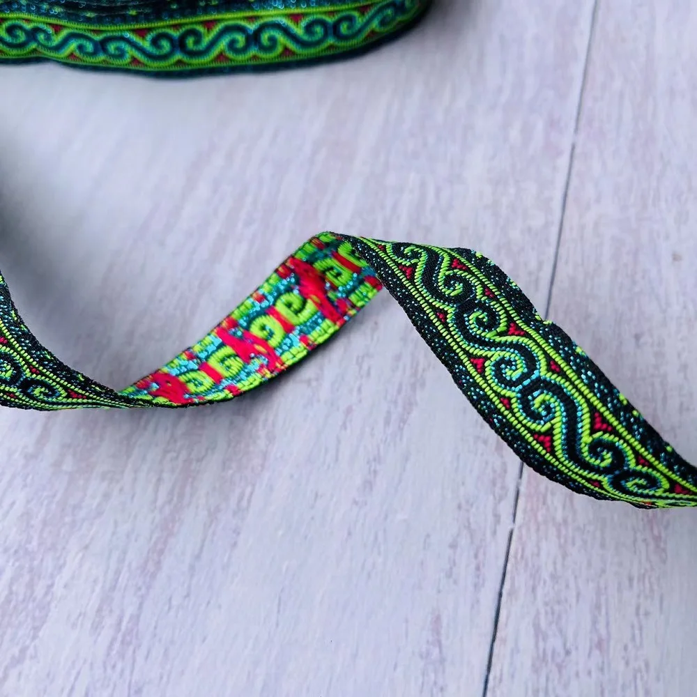 20 ярдов/Лот, тканая жаккардовая лента, зеленая, 1,5 см, геометрический рисунок, аксессуары для одежды