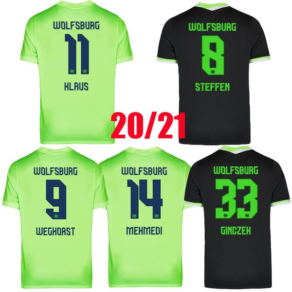 20 21 vfl wolfsburg soccer jersey home away brekalo roussillon soccer uniform klaus xaver malli weghorst football shirts 2020 2021, Black