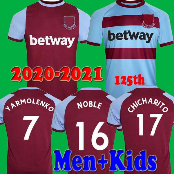 20 21 west home ham soccer jerseys 2020 2021 united commemorative 125th anniversary chicharito noble anderson lanzini antonio men kids away, Black;yellow