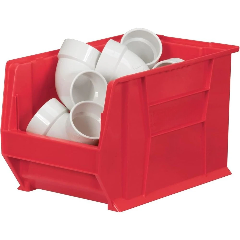20-Inch Large Stackable Plastic Storage Bins, 2-Pack, Red for Garage, Classroom, Warehouse Organization