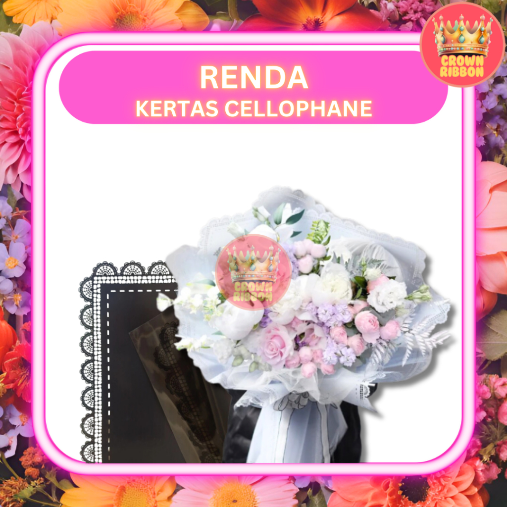 (20 LEMBAR) Kertas Cellophane Buket Bunga - RENDA - Flower Wrapping Paper