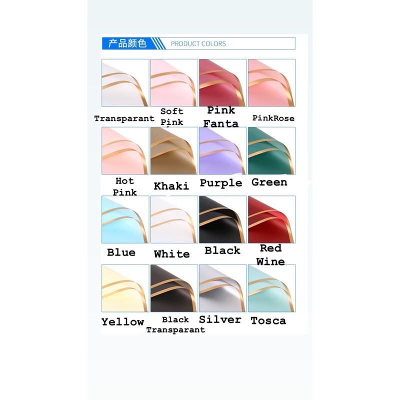 [20 Lembar] KERTAS CELLOPHANE FLOWER WRAPPING LIST GOLD WATERPROOF PAPER