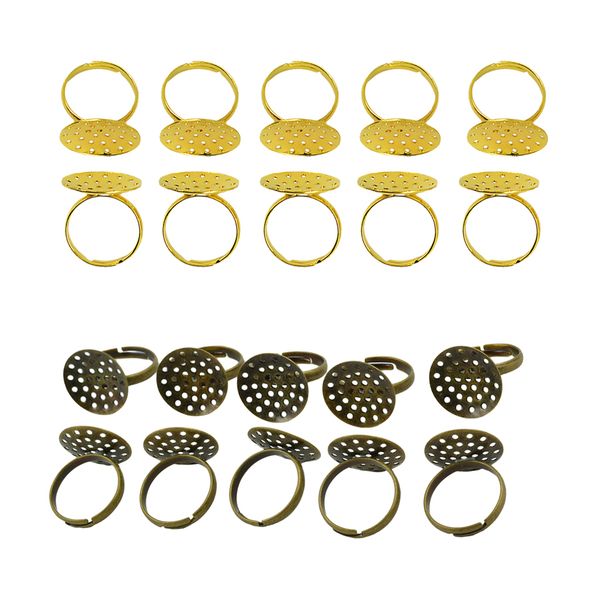 20 pieces adjustable brass finger ring 20mm diy blank beze glue sewing tray, Golden;silver