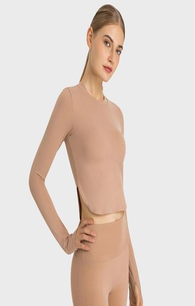 20 yoga clothes side seam split sweatshirt soft against skin casual jogging long sleeve tee elastic quick dry shirts with r5896253