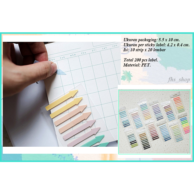 200 Pcs Sticky Notes Strip Memo Tempel Sticky Transparan Highlighter Highlighter Paper Arrow Point