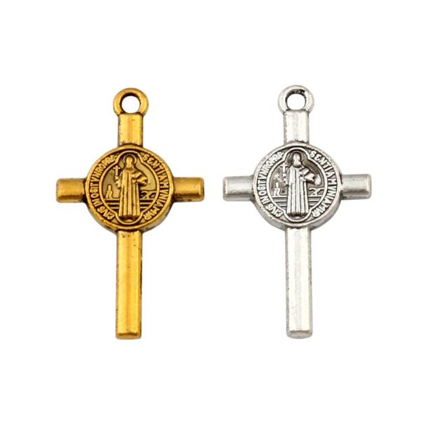 200pcs antique silver/gold benedict medal cross charms pendants for jewelry making bracelet necklace diy findings 13x23mm a-569, Bronze;silver