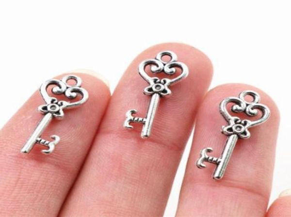 200pcslot alloy key charms antique silver charms pendant for necklace jewelry making findings 21x9mm2558615, Bronze;silver