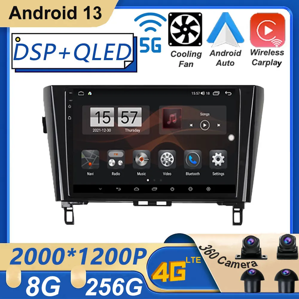 10" Car Screen For Nissan X-Trail Qashqai 2 J1T32 Qashqai J10 J11 2014 - 2019 Android 13 Car Player Navigation Radio Multimedia