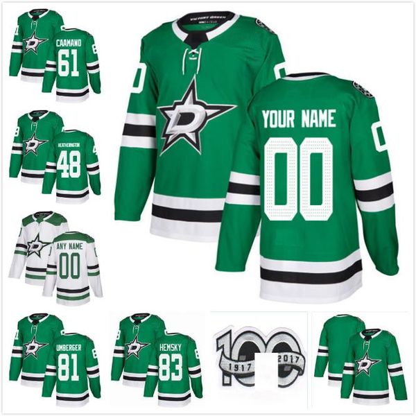 2017-2018 season dallas stars 83 ales hemsky r.j. umberger nicholas caama dillon heatherington 100th patch custom hockey jerseys home away, Black;red