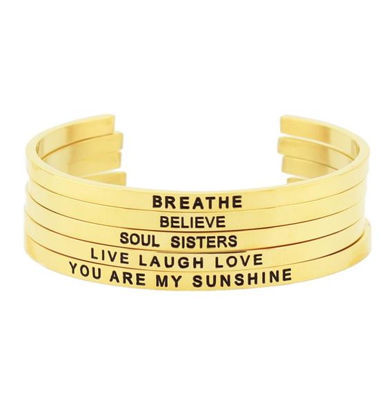 2017 new arrival 316l stainless steel engraved positive inspirational quote cuff bracelet women039s jewelry gold mantra bangle4392278, Black