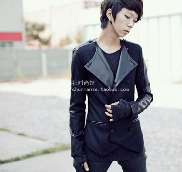 2017 new fashion costume suit night korean cultivating personality single tunic suit men's clothing singer costumes, White;black