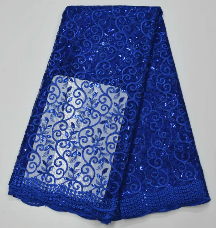 2018 Высокое качество африканская кружевная ткань Королевский синий Французский кружевной ткани с золотыми блестками Ткань Белый абрикосовый нигерийский кружевной ткани