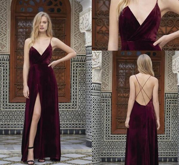 2018 бургундия с v-образным вырезом и сексуальными задними вечерними платьями 2017 спагетти с высокой сплит длиной до пола бархатные платья, White;pink