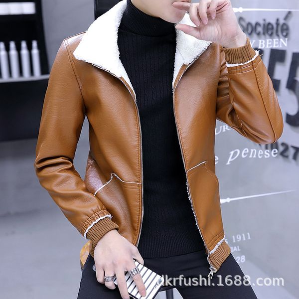 2018 весной и осенью новый стиль кожаной одежды для мужчин мужские матовых и толстого slim fit coat локомотив повседневных мужчин кожи pu j, Black