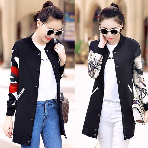 2018 год весной и осенью моды женщин новый корейский досуг диких печати папа бейсбол равномерное длинный куртка ветровка tb18198, Tan;black