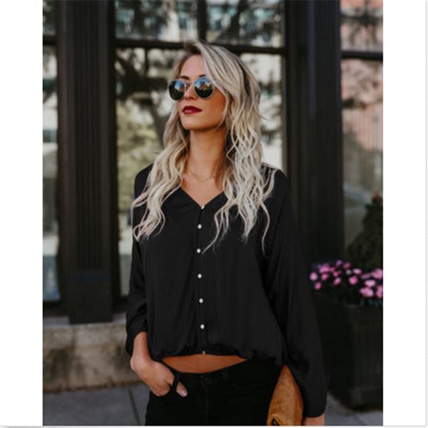 2018 женские шифоновые блузки рубашка свободные v-образным вырезом топы модные рубашки женские топы с длинным рукавом, White