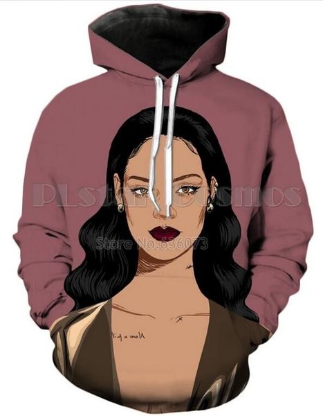 2018 мода для женщин / мужчин rihanna funny 3d print повседневная толстовка с капюшоном, Black