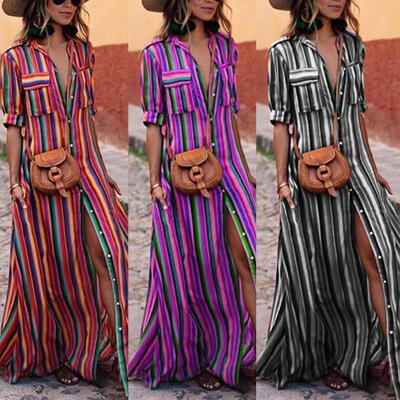 2018 Hot Sale Urkutoba Womens Summer Boho Casual Stripe Long Maxi Evening Party Cocktail Beach